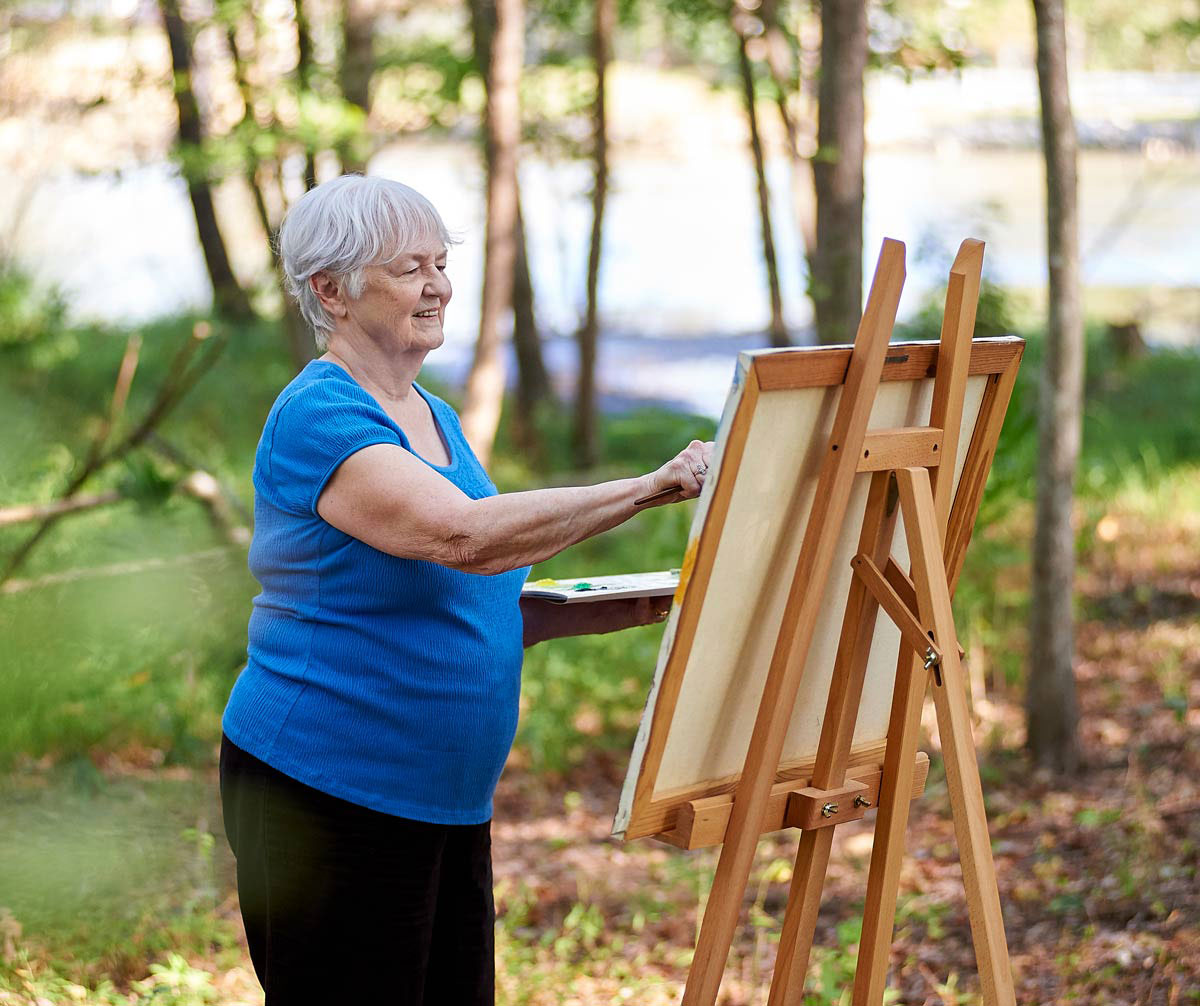 At Rolling Green Village, a retirement community in Greenville, SC., we couldn’t be more excited about the opening of our new art studio. It will provide a wonderful space for our residents to reap the benefits of creative pursuits. Many older adults express anxiety around starting a brand-new hobby. The team members at Rolling Green Village retirement community are always here to help, but if you’d like to start painting outside of the art studio, here are some tips for you.