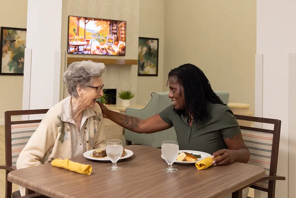 While assisted living focuses on daily living assistance, memory care adds specialized staff training, secure environments, and tailored activities designed for those with memory impairments. One of the benefits of memory care at Rolling Green Village is our unique, research-based Heartfelt Connections – A Memory Care Program®.
