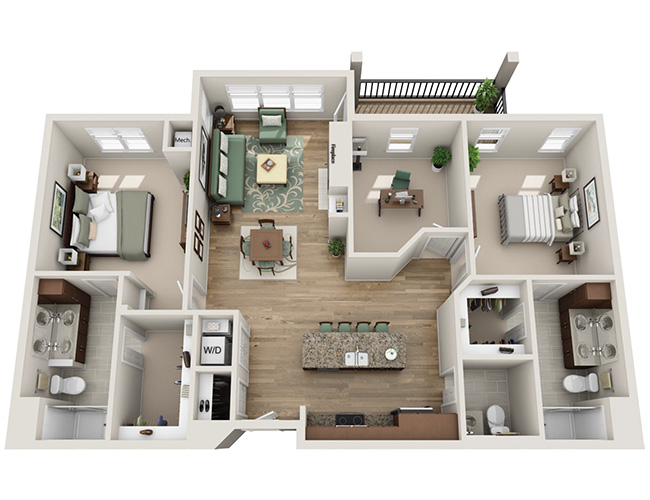 Take a virtual look at our studio, one-bedroom, two-bedroom, and three-bedroom floor plans below.